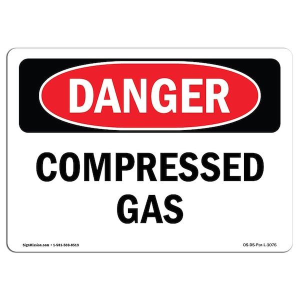 OSHA Danger Sign, 10" Height, 14" Width, Rigid Plastic, Compressed Gas, Landscape, 1014-L-1076