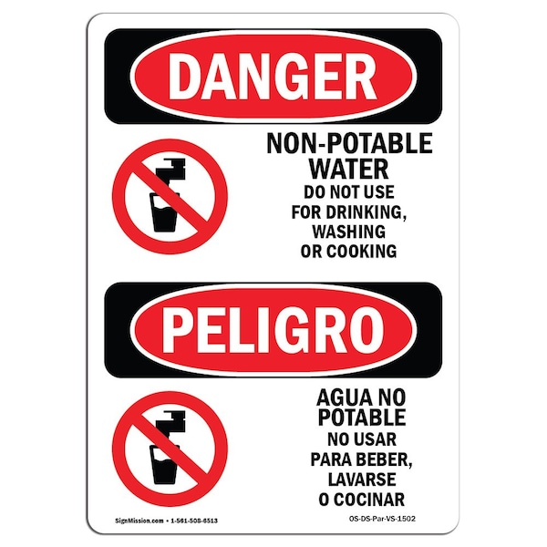 OSHA Danger Sign, 10" Height, Non-Potable Water No Drinking Bilingual Spanish, DS-D-VS-1502