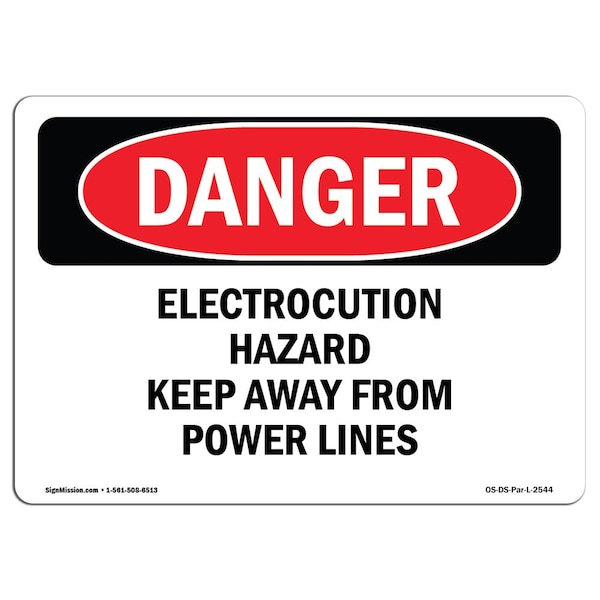 OSHA Danger Sign, 12" Height, 18" Width, Electrocution Hazard Keep Away From Power Lines, Landscape