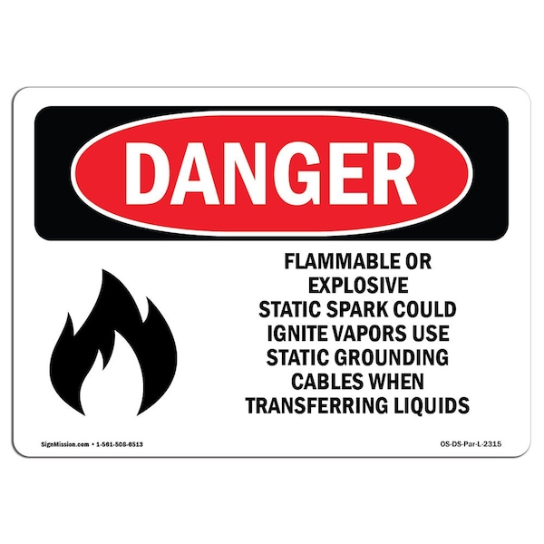 OSHA Danger Sign, 7" Height, 10" Width, Rigid Plastic, Flammable Or Explosive Static, Landscape