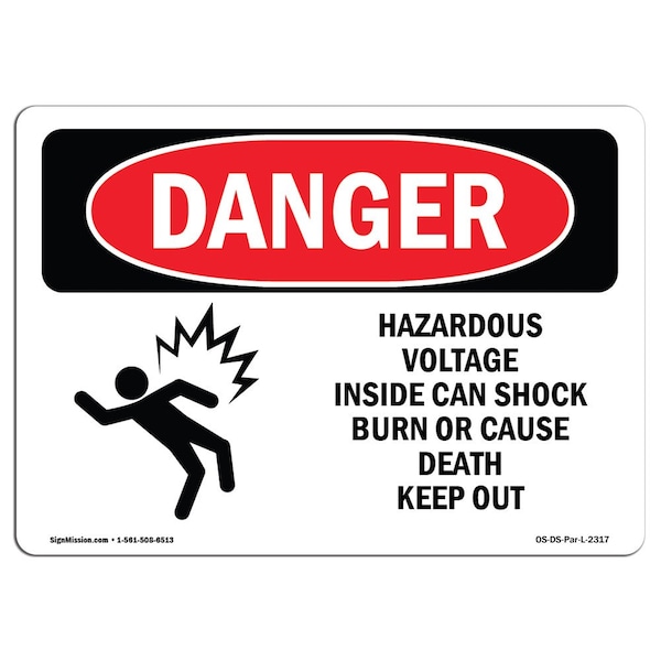 OSHA Danger Sign, 7" Height, 10" Width, Rigid Plastic, Hazardous Voltage Inside Can, Landscape