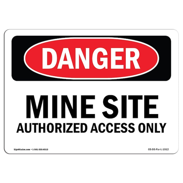 OSHA Danger Sign, 7" Height, 10" Width, Rigid Plastic, Mine Site Authorized Access Only, Landscape