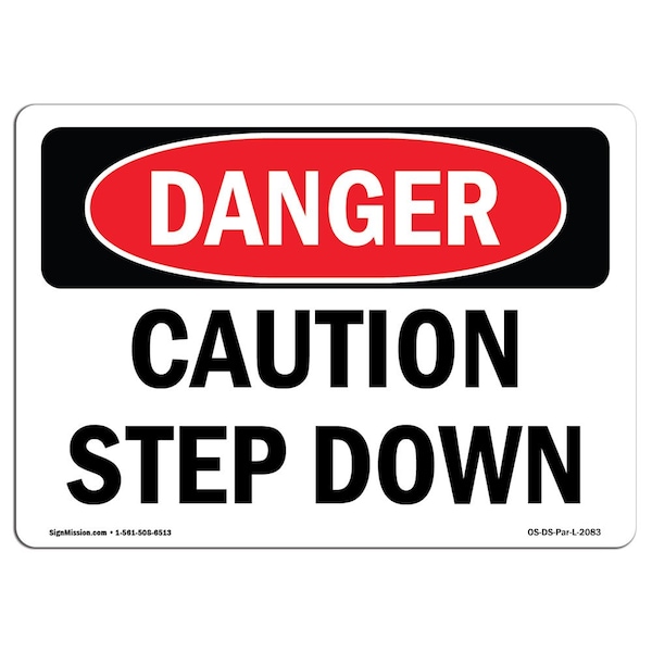 OSHA Danger Sign, Caution Step Down, 5in X 3.5in Decal, 3.5" W, 5" L, Landscape, Caution Step Down