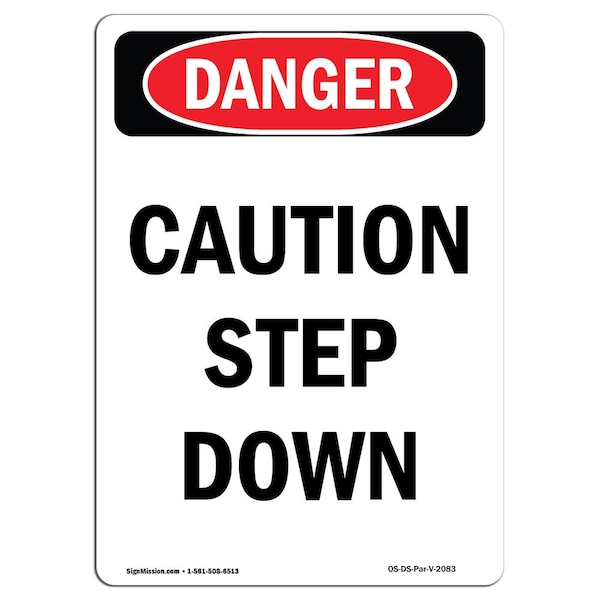 OSHA Danger Sign, Caution Step Down, 7in X 5in Decal, 5" W, 7" L, Portrait, Caution Step Down