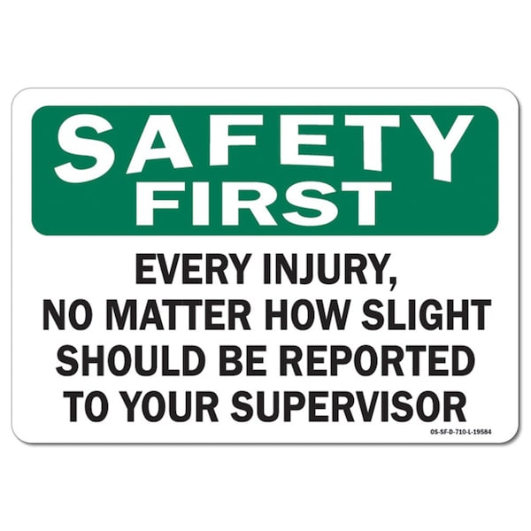 OSHA, Every Injury No Matter How Slight Should Reported t, 14in X 10in Alum, 10" W, 14" L, Landscape