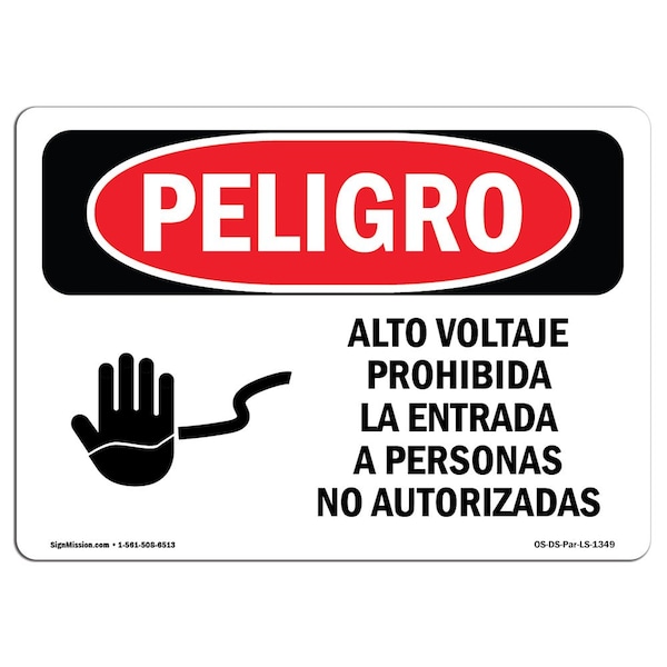 OSHA, High Voltage Unauthorized Spanish, 7in X 5in, 7" W, 5" H, High Voltage Unauthorized Spanish