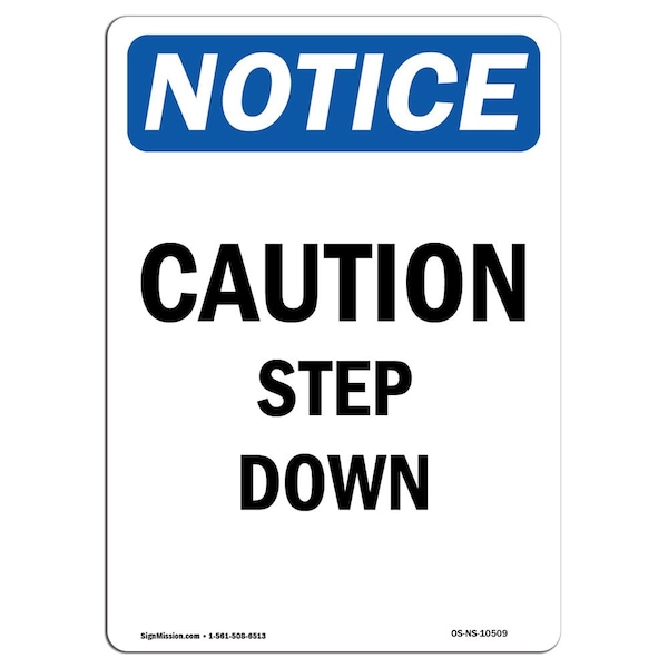 OSHA Notice, 5" Height, Caution Step Down Sign, 5" X 3.5", Portrait