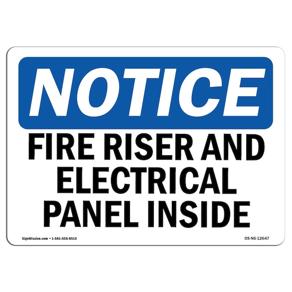 OSHA Notice, 5" Height, Fire Riser And Electrical Panel Inside Sign, 7" X 5", Landscape