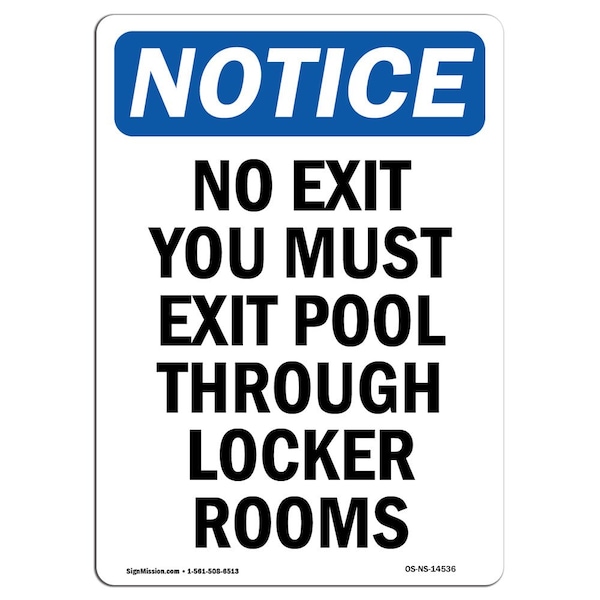 OSHA Notice, 5" Height, No Exit You Must Exit Pool Through Sign, 5" X 3.5", Portrait