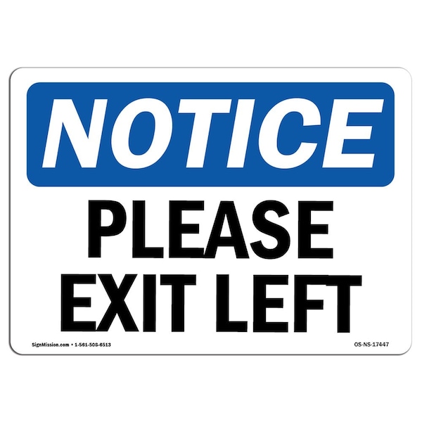 OSHA Notice, 5" Height, Please Exit Left Sign, 7" X 5", Landscape