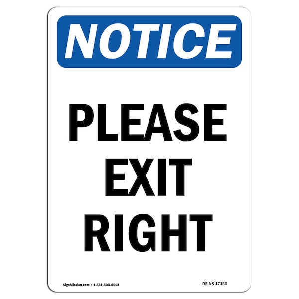 OSHA Notice, 5" Height, Please Exit Right Sign, 5" X 3.5", Portrait