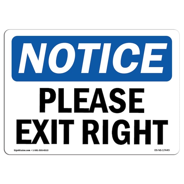 OSHA Notice, 5" Height, Please Exit Right Sign, 7" X 5", Landscape