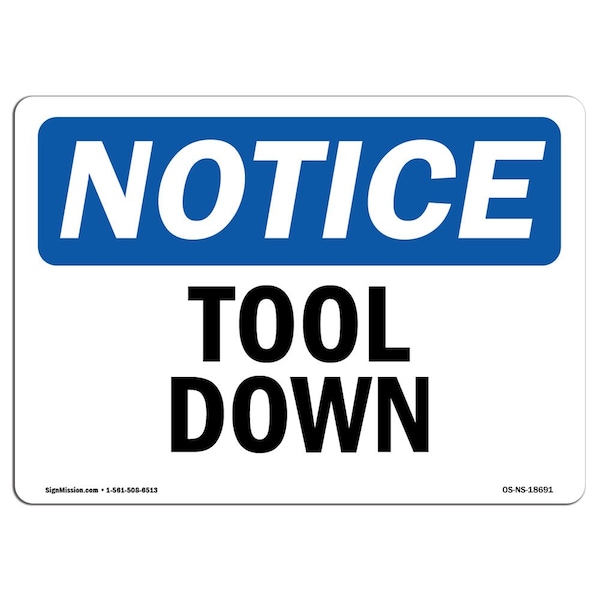 OSHA Notice, 5" Height, Tool Down Sign, 7" X 5", Landscape