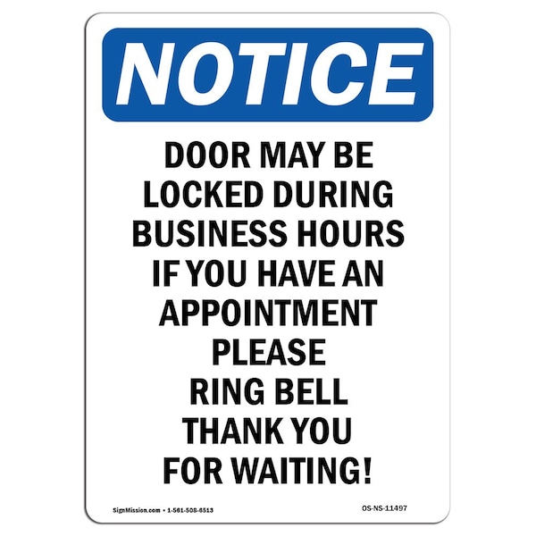 OSHA Notice, 7" Height, Door May Be Locked During Business Sign, 7" X 5", Portrait
