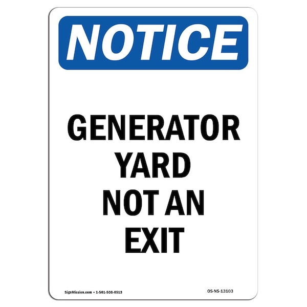 OSHA Notice, 7" Height, Generator Yard Not An Exit Sign, 7" X 5", Portrait