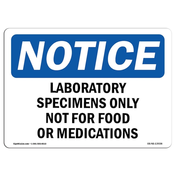 OSHA Notice Sign, 12" H, Rigid Plastic, Laboratory Specimens Only Not For Food Or Sign, Landscape