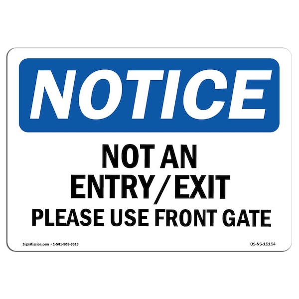 OSHA Notice Sign, 3.5" Height, 5" Width, Not An Entry Exit Please Use Front Gate Sign, Landscape