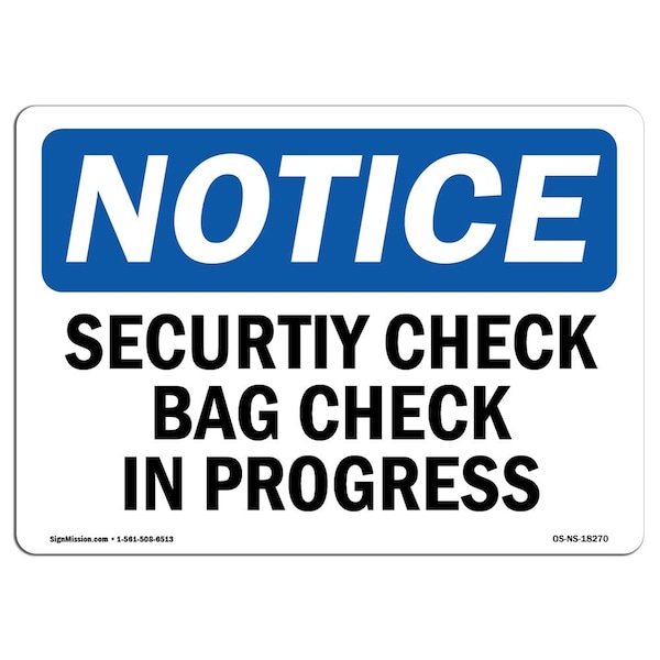 OSHA Notice Sign, 3.5" Height, 5" Width, Security Check Bag Check In Progress Sign, Landscape