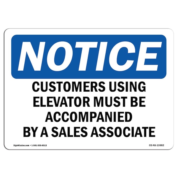 OSHA Notice Sign, 7" Height, 10" Width, Customers Using Elevator Must Be Accompanied Sign, Landscape