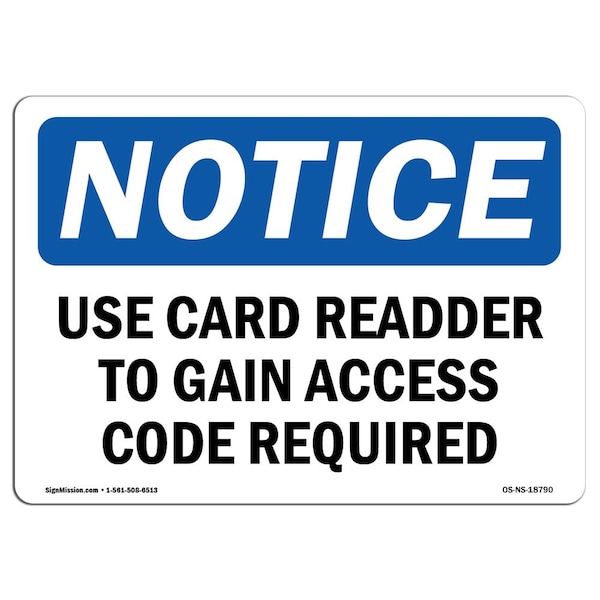 OSHA Notice Sign, 7" Height, 10" Width, Use Card Reader To Gain Access Code Required Sign, Landscape