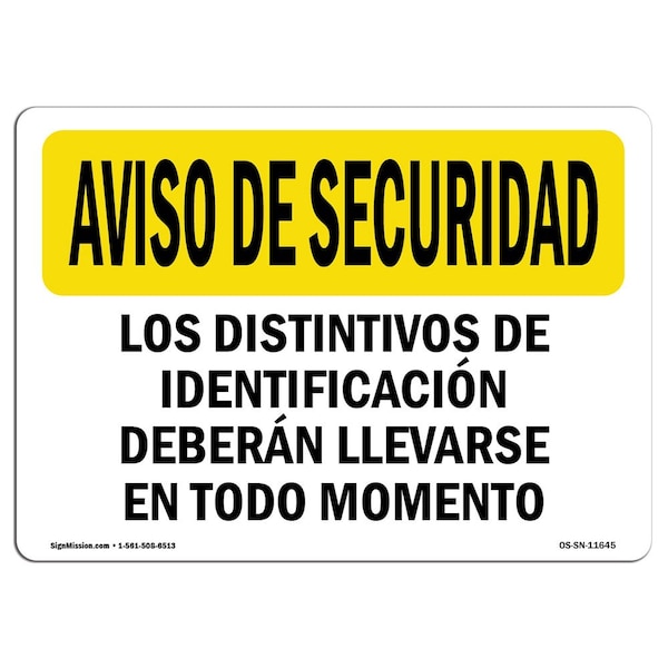OSHA Security Sign, 10" Height, 14" Width, Security Badges Must Worn Spanish, Landscape