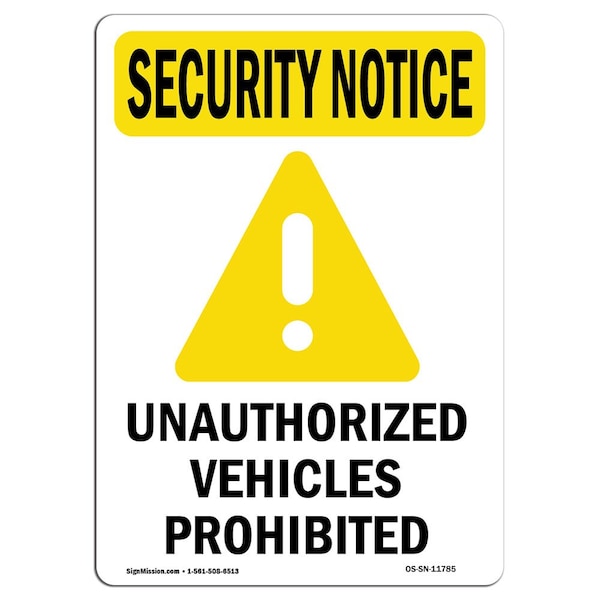 OSHA Security Sign, 18" Height, Rigid Plastic, Unauthorized Vehicles, Portrait