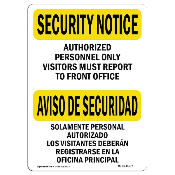 OSHA Security Sign, 5" Height, 7" Width, Visitors To Front Office Bilingual, Landscape