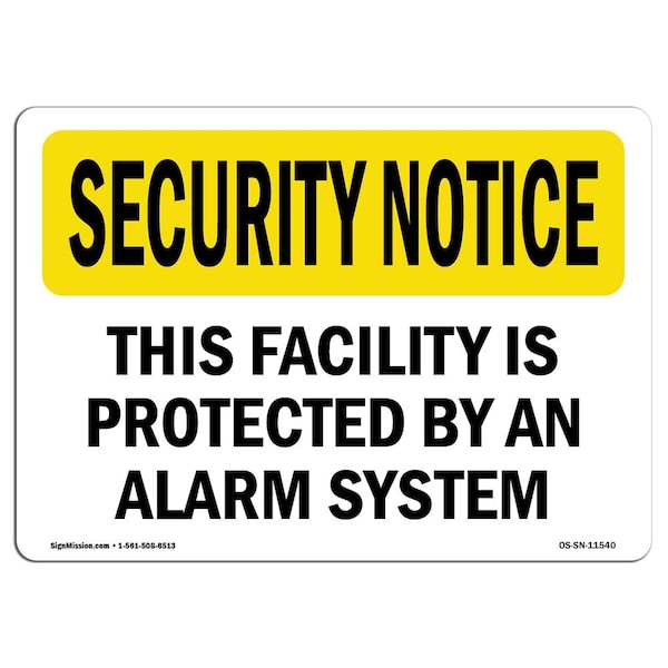OSHA Security Sign, 7" Height, 10" Width, Facility Protected By Alarm System, Landscape