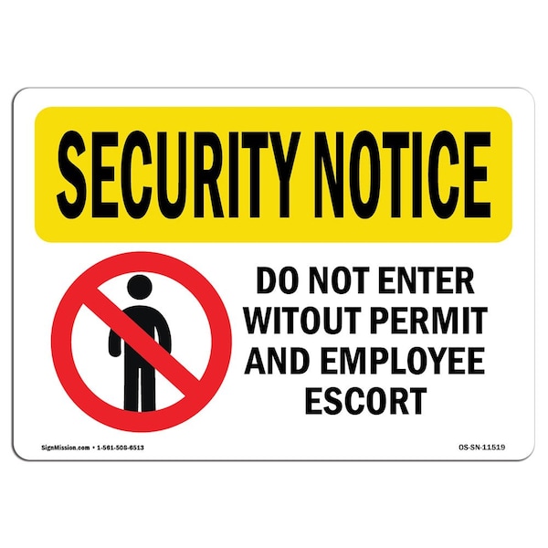 OSHA Security Sign, 7" Height, 10" Width, Rigid Plastic, Do Not Enter Without Permit, Landscape