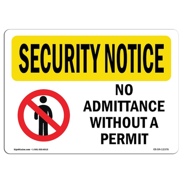 OSHA Security Sign, 7" Height, 10" Width, Rigid Plastic, No Admittance Without A Permit, Landscape