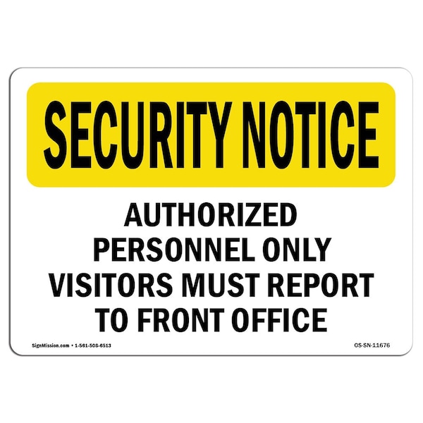 OSHA Security Sign, 7" Height, 10" Width, Rigid Plastic, Visitors Report To Front Office, Landscape
