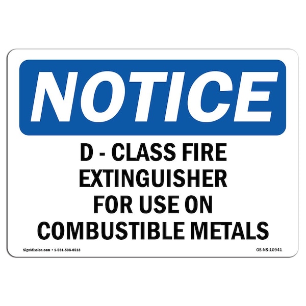 OSHA Sign, 10" H, Rigid Plastic, D-Class Fire Extinguisher For Use On Combustible Sign, Landscape