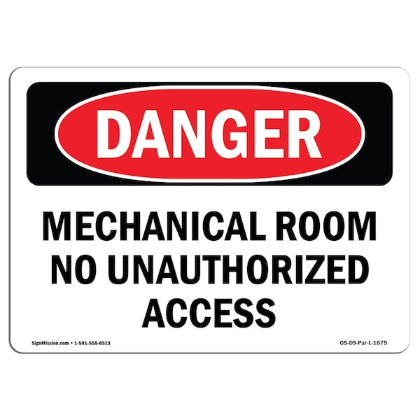 OSHA Sign, 10" Height, 14" Width, Rigid Plastic, Mechanical Room No Unauthorized Access, Landscape