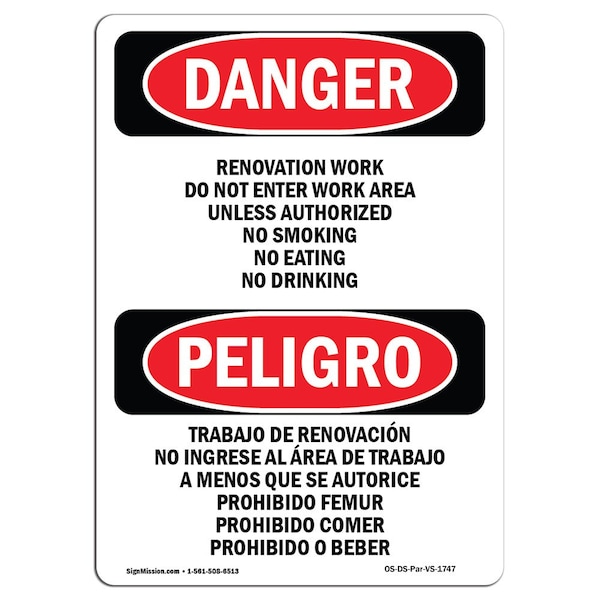 OSHA Sign, 5" Height, Renovation Work Do Not Enter Work Area, Spanish, DS-D-35-VS-1747