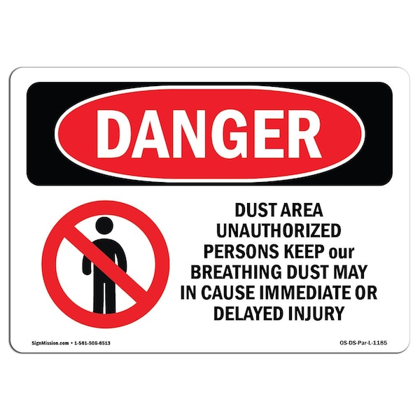 OSHA Sign, 7" Height, 10" Width, Rigid Plastic, Dust Area Unauthorized Persons Keep Out, Landscape