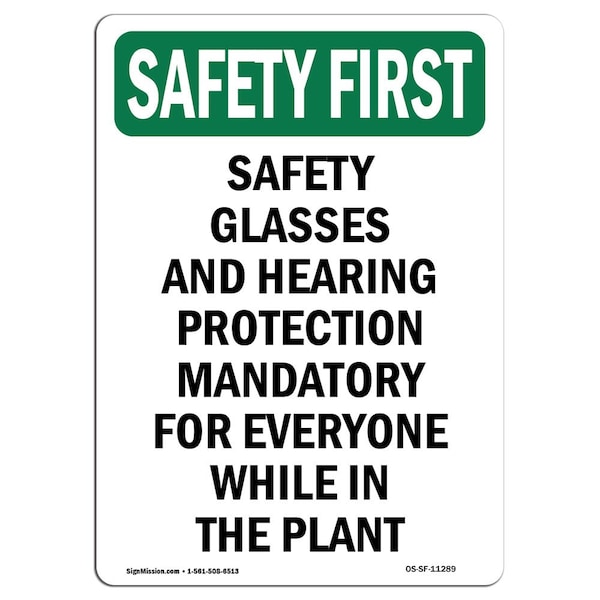 OSHA Sign, Glasses And Hearing Protection, 18in X 12in Decal, 12" W, 18" H, Portrait