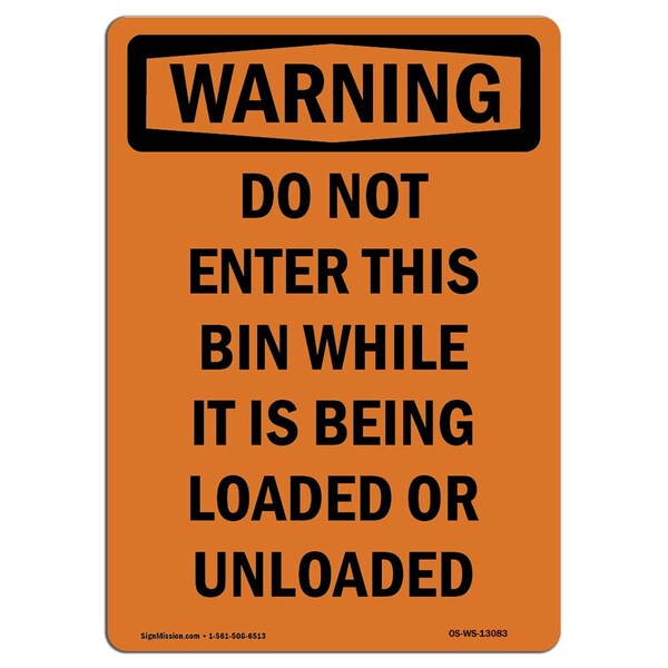 OSHA Warning Sign, 10" Height, Rigid Plastic, Do Not Enter This Bin While It, Portrait