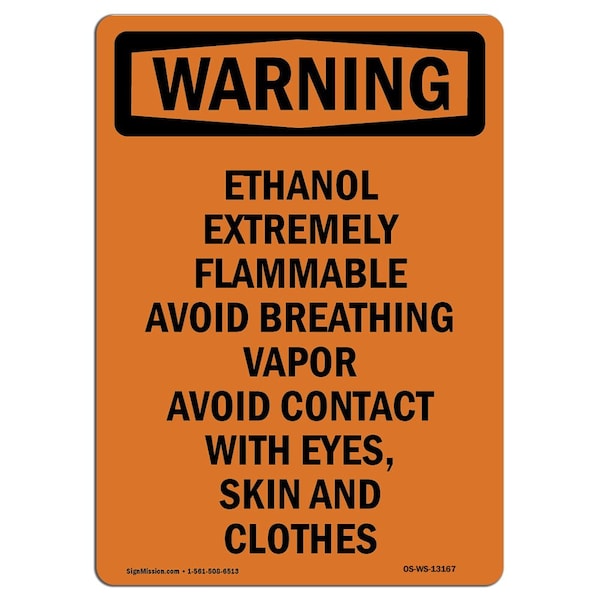 OSHA Warning Sign, 10" Height, Rigid Plastic, Ethanol Extremely Flammable Avoid, Portrait