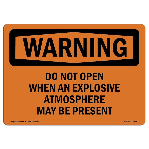 OSHA Warning Sign, 7" Height, 10" Width, Rigid Plastic, Do Not Open Explosive Atmosphere, Landscape