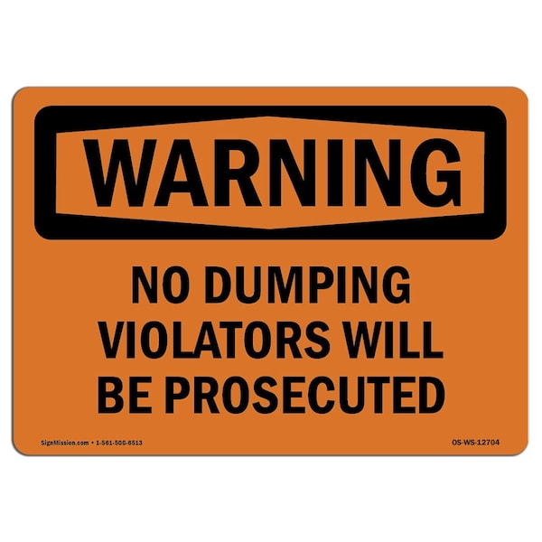 OSHA Warning Sign, 7" Height, Rigid Plastic, No Dumping Violators Will Be Prosecuted, Landscape