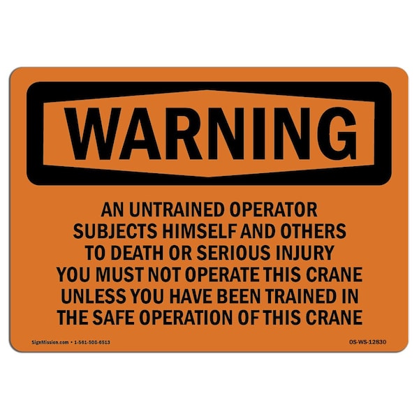 OSHA Warning Sign, 7" Height, Rigid Plastic, Safe Crane Operation Untrained Operator, Landscape