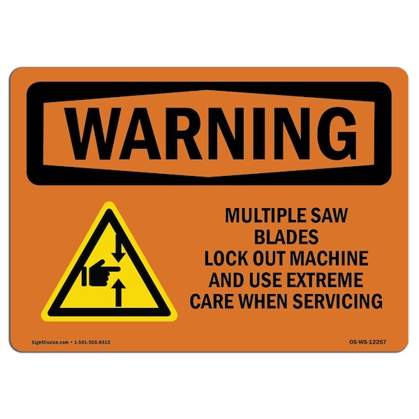 OSHA WARNING Sign, Multiple Saw Blades Lock Out, 14in X 10in Aluminum, 10" W, 14" L, Landscape