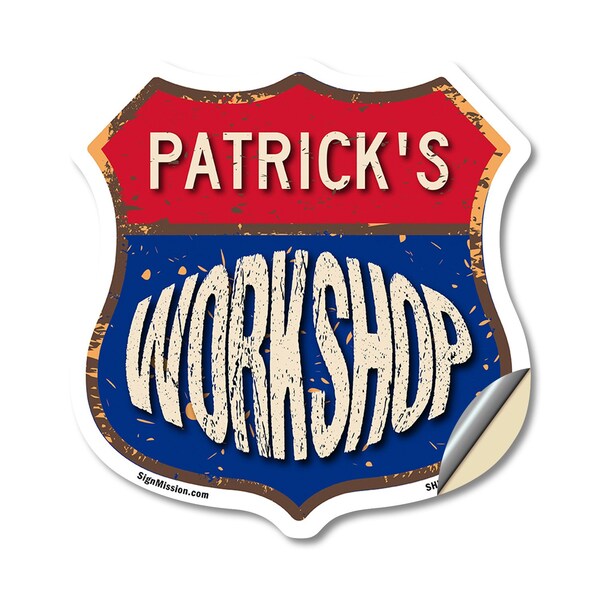 Add a Fun, Personalized Touch to Your Workshop with SignMission's Custom Shield-Shaped Vinyl Decals Make your Workshop stand out with a decal that's not just eye-catching, but also full of personality! Our shield-shaped vinyl decals are the perfect way to add a touch of fun and style to your space. Featuring your name and a sleek, bold design, these decals bring a modern, professional vibe to any Workshop, workshop, or man cave. With their vibrant look and high-quality vinyl construction, they'll grab attention and give your space that extra bit of flair for years to come. Bring Durable Style to Your Workshop Our shield-shaped decals are designed with premium 3M UV-protected, weather-resistant vinyl to ensure a long-lasting finish. Perfect for indoor and outdoor use, these decals are resistant to fading, cracking, and peeling. With an easy peel-and-stick application, you can quickly add your personalized touch to walls, doors, windows, or toolboxes. Wherever you place it, this decal adds character and charm that will stand the test of time.