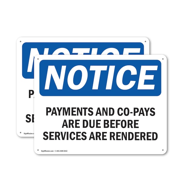 Payments And Co-Pays Are Due Before Services, 10 in W x Rectangle, Plastic