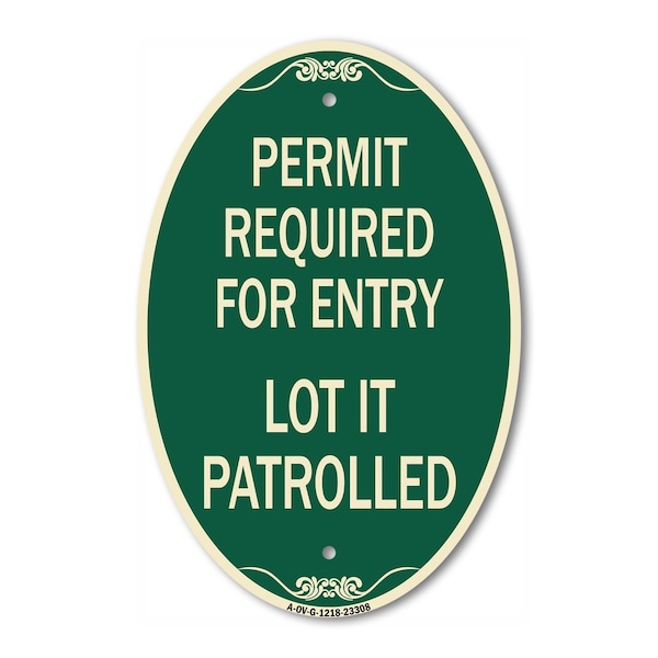 Permit Required for Entry Lot Is Patrolled Pa, 12 In X 18 In Architectural, Heavy Gauge Aluminum