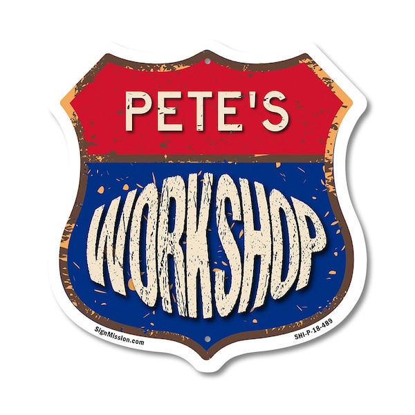 Add a Fun, Personalized Touch to Your Workshop with SignMission's Custom Shield-Shaped Signs Make your Workshop stand out with a sign that's not just eye-catching, but also full of personality! Our shield-shaped signs are the perfect way to add a touch of fun and style to your space. Featuring your name and a sleek, polished design, these signs are crafted to bring a modern, professional vibe to any Workshop, workshop, or man cave. With their bold look and durable commercial-grade plastic construction, they'll grab attention and give your space that extra bit of flair for years to come. Bring Modern Durability to Your Workshop Our shield-shaped signs aren't just stylish-they're designed with long-lasting, commercial-grade plastic that ensures both a sleek finish and unbeatable durability. Perfect for any indoor or outdoor space, these signs are resistant to cracking, fading, and weather damage. They come with pre-drilled holes for easy mounting, so you can display them effortlessly wherever they look best. Give your Workshop a polished and timeless appeal with a sign that combines charm and toughness. Our shield-shaped signs are expertly crafted to bring both style and resilience to your space while featuring your personalized touch.