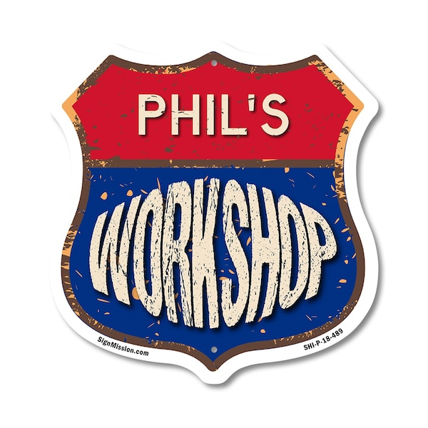 Add a Fun, Personalized Touch to Your Workshop with SignMission's Custom Shield-Shaped Signs Make your Workshop stand out with a sign that's not just eye-catching, but also full of personality! Our shield-shaped signs are the perfect way to add a touch of fun and style to your space. Featuring your name and a sleek, polished design, these signs are crafted to bring a modern, professional vibe to any Workshop, workshop, or man cave. With their bold look and durable commercial-grade plastic construction, they'll grab attention and give your space that extra bit of flair for years to come. Bring Modern Durability to Your Workshop Our shield-shaped signs aren't just stylish-they're designed with long-lasting, commercial-grade plastic that ensures both a sleek finish and unbeatable durability. Perfect for any indoor or outdoor space, these signs are resistant to cracking, fading, and weather damage. They come with pre-drilled holes for easy mounting, so you can display them effortlessly wherever they look best. Give your Workshop a polished and timeless appeal with a sign that combines charm and toughness. Our shield-shaped signs are expertly crafted to bring both style and resilience to your space while featuring your personalized touch.