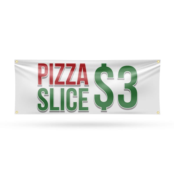 Pizza Slice $3, 18 Inch x 48 Inch, Vinyl Banner