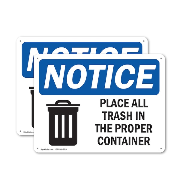 Place All Trash In The Proper Container, 18 in W x Rectangle, Plastic