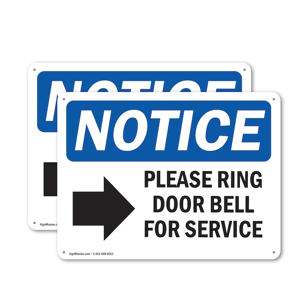 Please Ring Door Bell For Service, 14 in W x Rectangle, Plastic